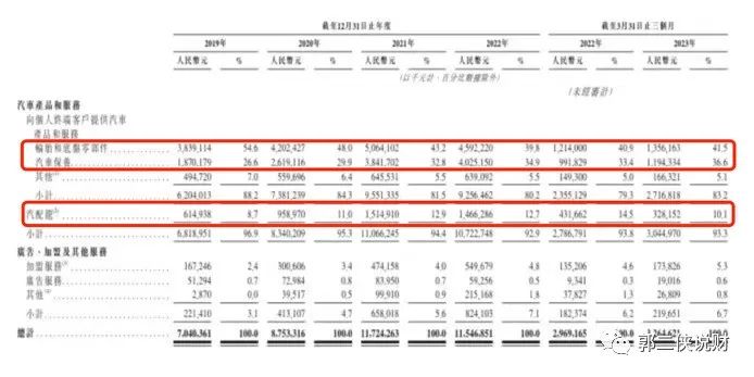 途虎养车的营收来自提供汽车产品和服务,其中汽车产品的营收最近四年占比90%以上,这里面收入来源最大的是轮胎和底盘零部件更换和汽车保养,这两项占比75%以上,第三是通过汽配龙卖汽车零配件营收也占比10%左右,其它服务的营收占比还太少。