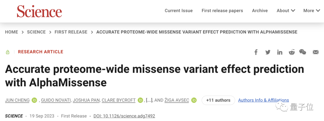 参考链接:[1]论文地址:https://www.science.org/doi/10.1126/science.adg7492[2]https://www.deepmind.com/blog/alphamissense-catalogue-of-genetic-mutations-to-help-pinpoint-the-cause-of-diseases[3]https://github.com/deepmind/alphamissense