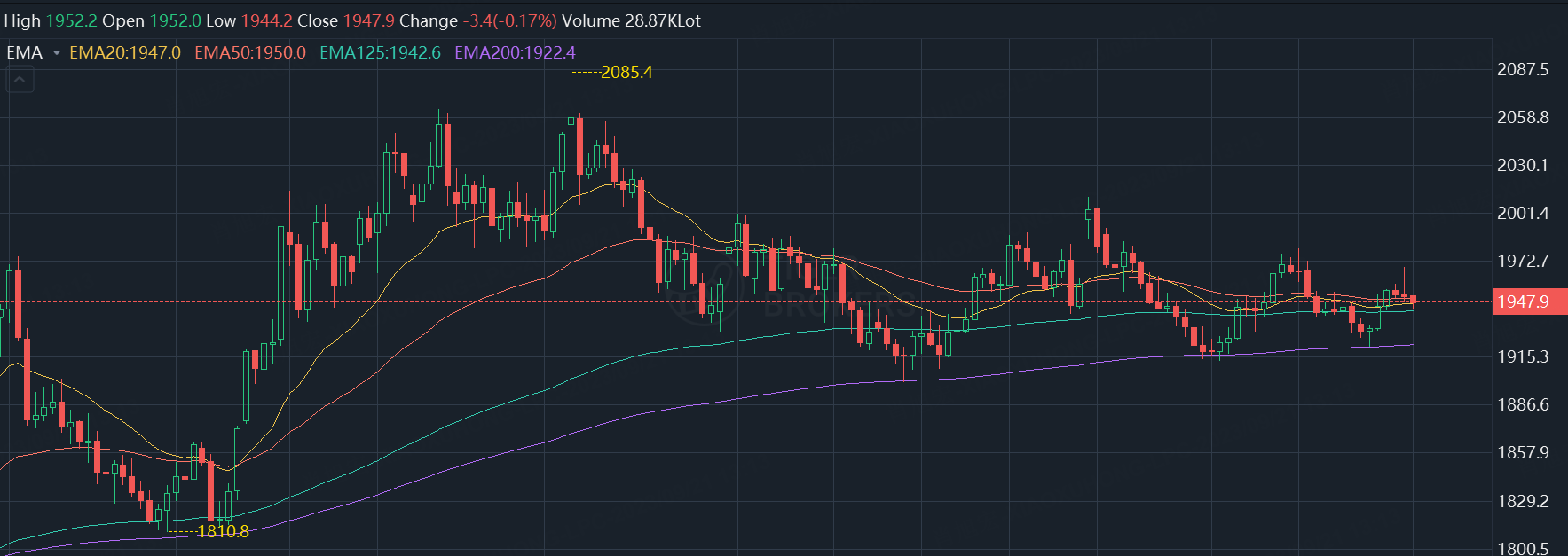 Gold closed down 0.2% on Thursday and was now at $1,947.9.