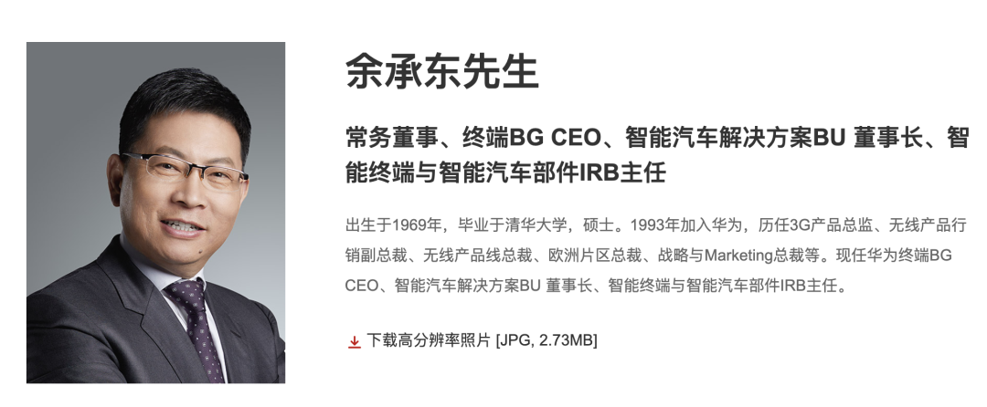 9月22日上午,华为官网正式更新管理层信息,余承东的车BU CEO职位,已经替换成了车BU 董事长。