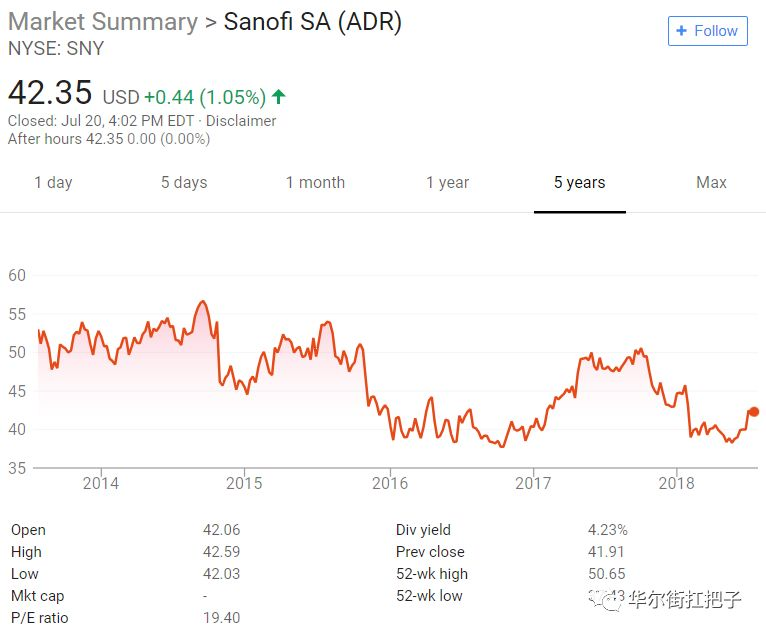 赛诺菲目前市值1065亿美元 , PE只有10倍左右 , 利润率在10.6% , 年营收410亿美元 , 负债315亿美元 , 5年平均分红率在3.77% 。$(SNY)$