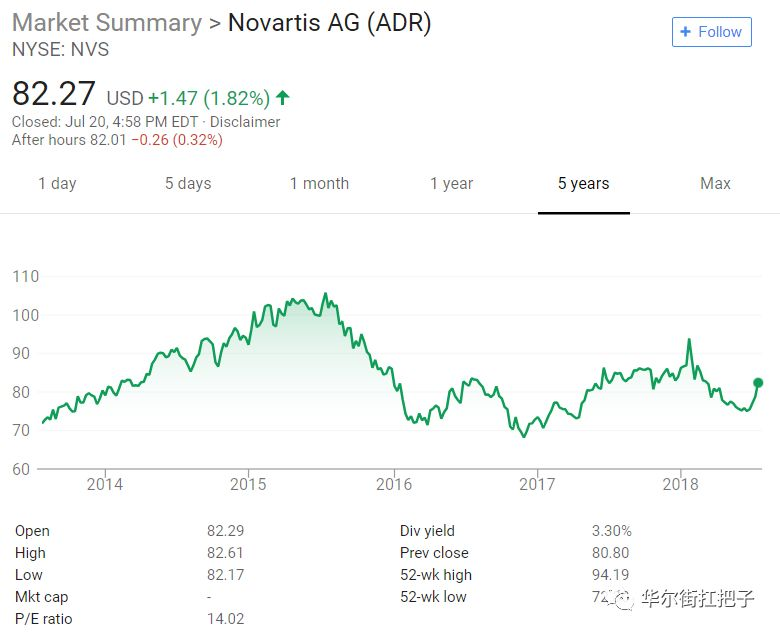 诺华制药是一家大型的制药公司 , 目前市值2100亿美元 , PE24倍 , 未来PE14 倍 , 利润率15.7% , 年营收500亿美元 , 负债340亿美元 , 5年平均分红率3.25%. 算是个不错的蓝筹 。$(NVS)$