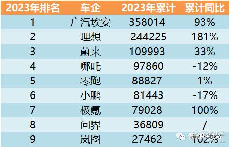 埃安以网约车为主,交付量突破5万;理想作为优等生依旧最稳健,连续3月破3万,最近每个月都在创月交付新高;蔚来未能保住2万的交付量,排名掉到第四,领跑首次冲到了第三的位置。