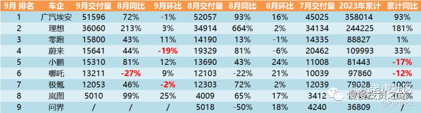 9.岚图:岚图汽车9月交付5010辆,同比增长99%,环比增长25%,销量稍微有点点起色。