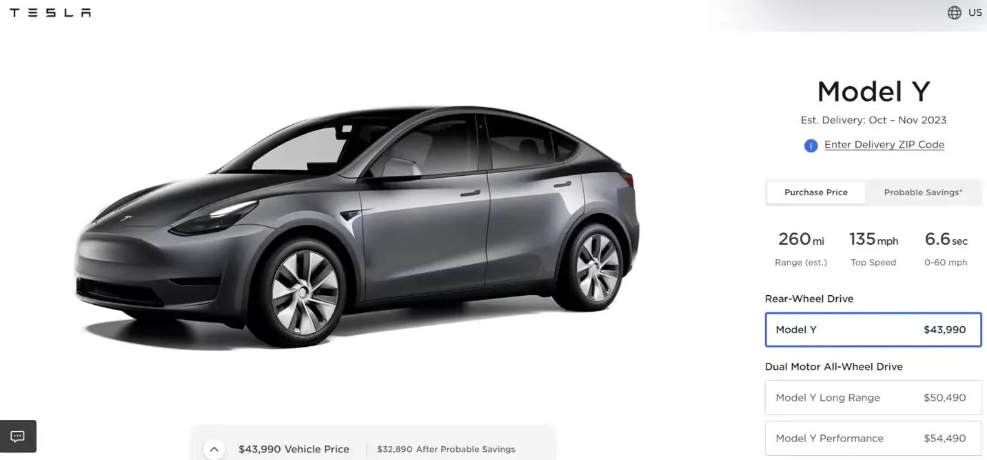 $特斯拉(TSLA)$官网显示,该公司在美国市场重新推出一款 Model Y 后驱版车型,取代了之前的全轮驱动版。这款新车的售价为43990美元,进一步拉低了 Model Y 车型在美国市场的售价,较之前的全轮驱动版售价降低3750美元。