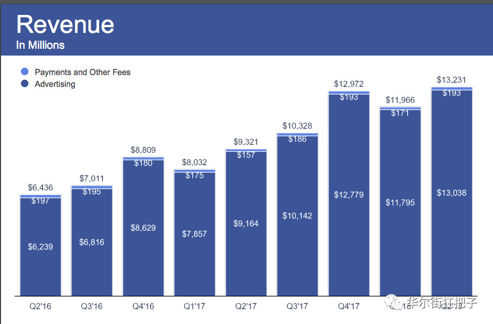 3. CFO 预期未来几个季度的盈利增速下降。CFO David Wehner警告称,未来几个季度,收入增长将以每个季度高单位数的比例减速。Wehner 表示,近来货币的不利影响,新的数据隐私控制以及FB新产品Stories 等用户全新体验等等,将一起导致减速。这个消息导致Facebook的股价从-10%+下降到-20%。真是神助攻。
