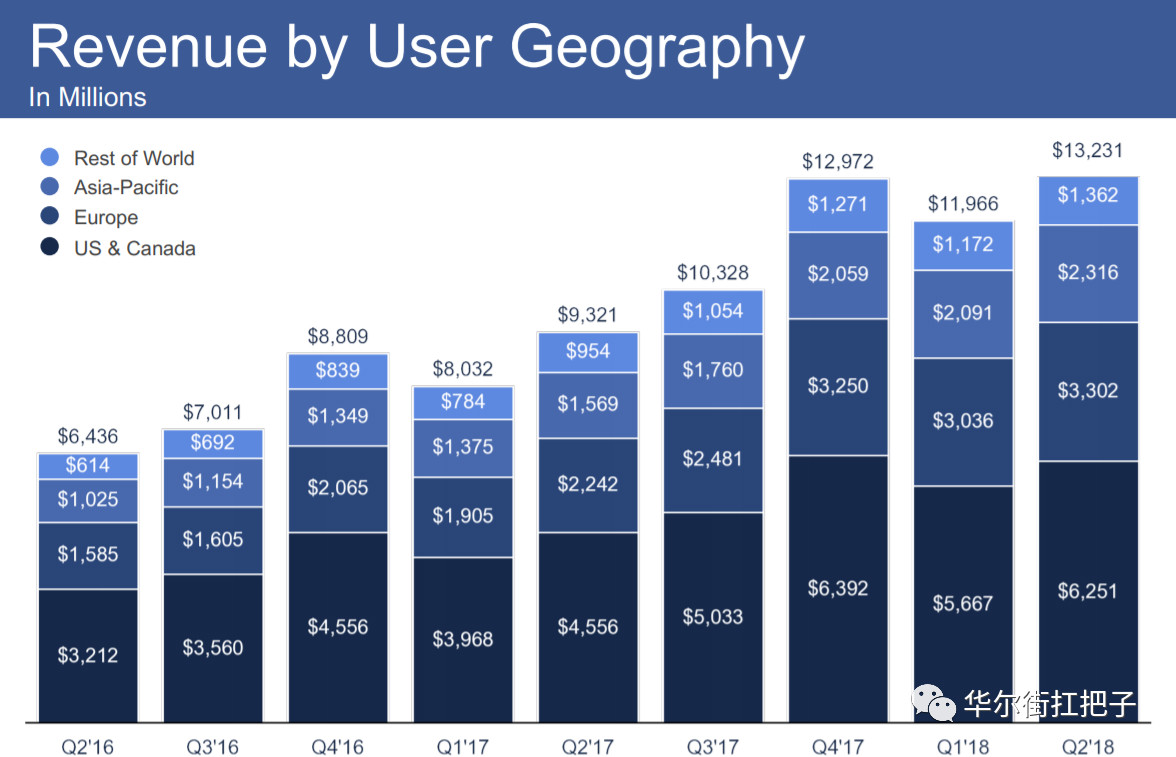 2. 北美用户饱和,欧洲区甚至萎缩。这一点我们在上个Facebook季度就已经说过,在北美区基本达到了用户瓶颈,并且当下年轻人更多的选择 Instagram和WhatsApp作为社交App。详细可以参考这里:【独家】Facebook 再蒸发超 100 亿美元:5个原因都在这里。结合利润来看,北美区加欧洲区土豪用户最多,贡献了一大半的利润。如果这两个区都不增长,哪怕亚洲区(当然没有中国。脸书是什么?)增长再快,又能多赚几个钱呢?