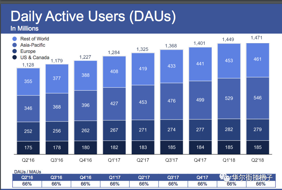 参考这样一组数据:Facebook 在2017年第四季度之前的最低DAU增长率为2.18%!!今天这么突然来一下历史最低增速,投资者对Facebook的用户增长担忧就被无限放大了。