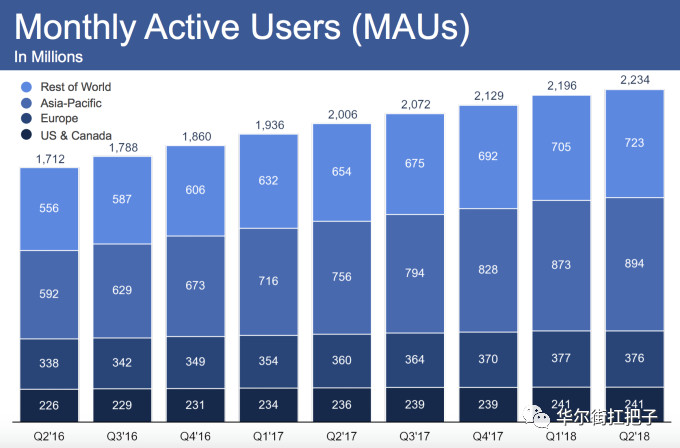 Facebook $(FB)$在美国时间周三下午公布了 2018 年第二季度财报,收入和用户的预期都比华尔街的预期稍低。再随后的电话会议上,FB的管理层还警告称,后面几个季度增速高个位数的降低;而且成本增速会超过营收增速。