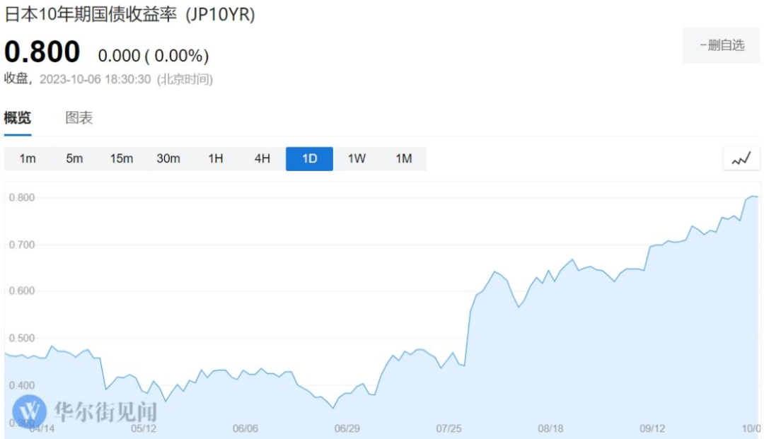 日本“鹰派”官员、经济学家释放加息信号。10月6日,日本10年期国债收益率升至0.8%,前日本央行理事门间一夫称本月可能考虑上调YCC,同时认为明年4月结束负利率和YCC是合乎逻辑的。