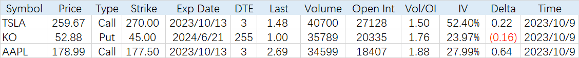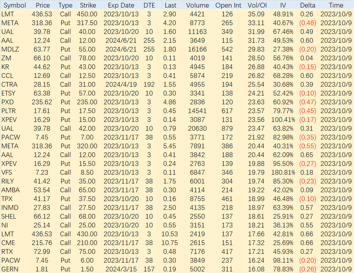 在10.9日交易的期权异动大单上,非常明显地体现了几个市场焦点:巴以冲突、减肥药对消费公司的影响,以及大科技股在当前宏观环境下的强弱。