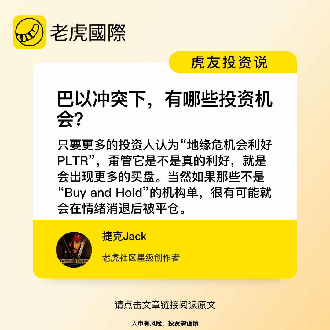 从基本面上来讲,这次冲突无论 $Palantir Technologies Inc.(PLTR)$ 是否需要负责,未来大概率还是会继续保持这样的订单。同时,有可能会刺激其他美国盟友加入订单采购。但政府订单属于国防预算,不是呼之则来挥之则去的,这也是PLTR业绩中最稳定的一块,因此增速也被牢牢限制。