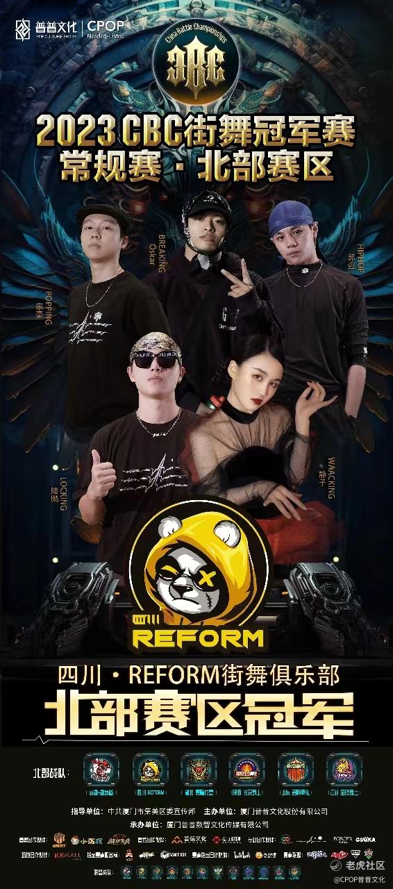 四川REFORM俱乐部战队以总积分91.5夺得2023CBC街舞冠军赛常规赛·北部赛区冠军。