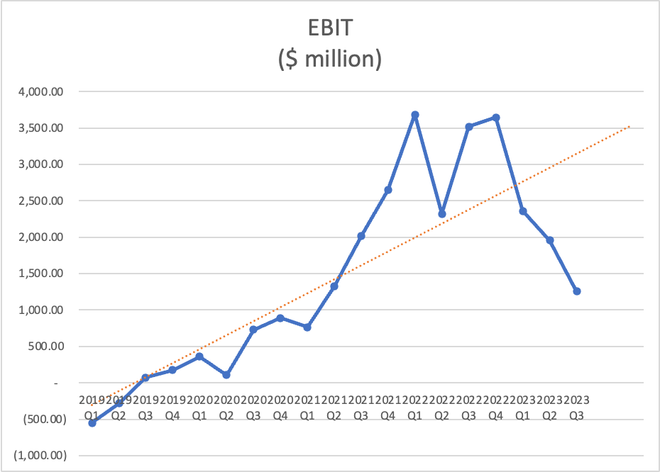 特斯拉整体的息税前净利润率(也就是财报上的Operating Margin)7.6%(上季度9.6%)。