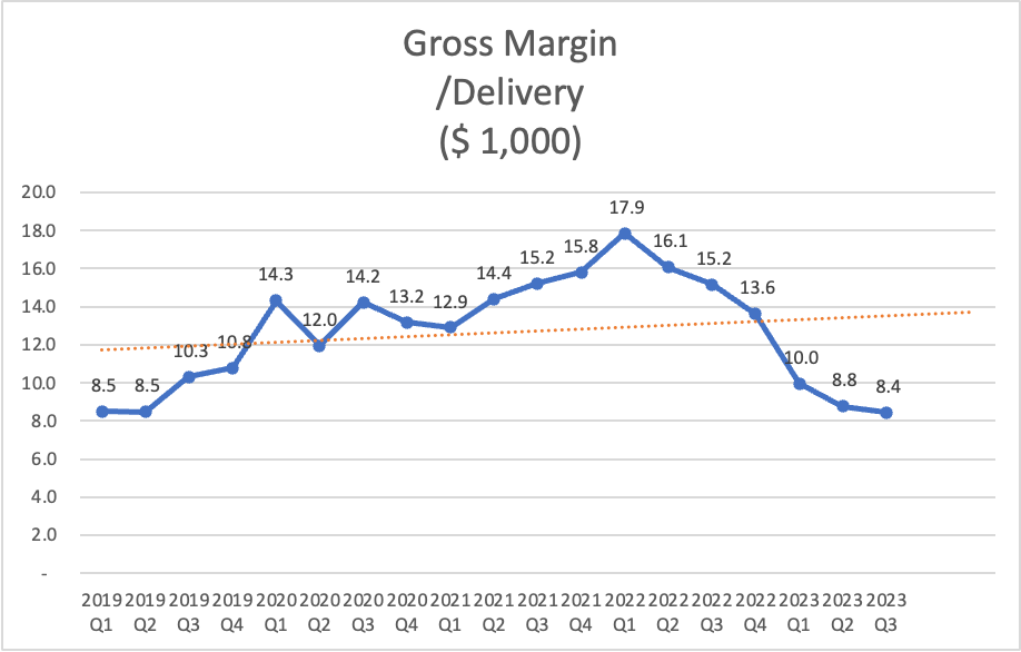 回到2020年在需求爆发+竞争平缓期,企业销量爆发的同时单车价格还可以涨,形成双击。现在到了2023年在需求平稳+竞争激烈期,企业要努力维持销量不下降的同时单车价格还要降,形成双杀。