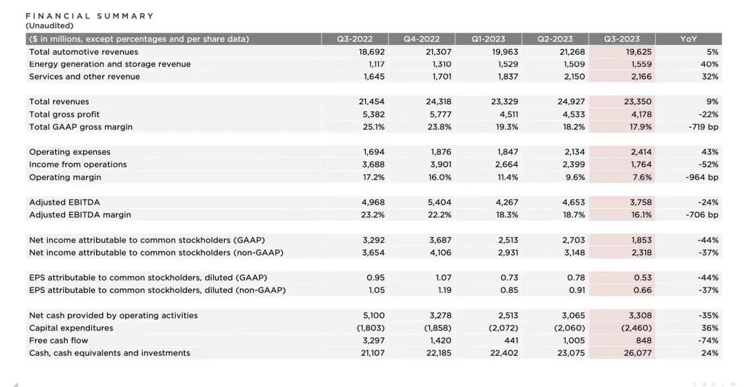第三季度,特斯拉各项业绩指标均明显下滑。