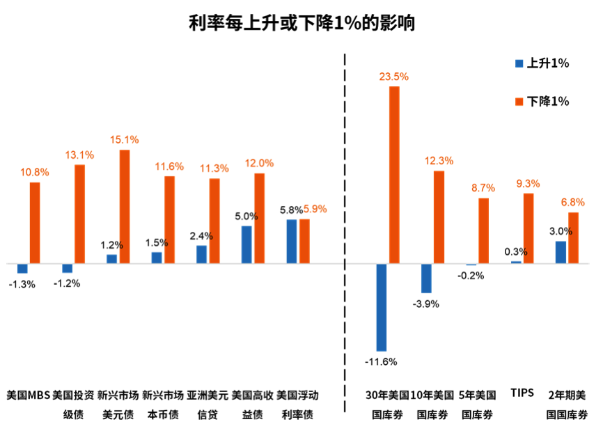 我们建议大家看一看历史上美国不同债券面对加息和降息后的表现,很显然,降息1%带来的总回报要明显高于加息1%后的总回报。综合来看,长债的利率会维持高位,短债利率会回落,目前买入短债的安全性更高,利率更好,总回报更好,合适时间转配到股票市场也会更加灵活。目前,我们建议的海外资产配置比重是60%的债券,40%的股票。