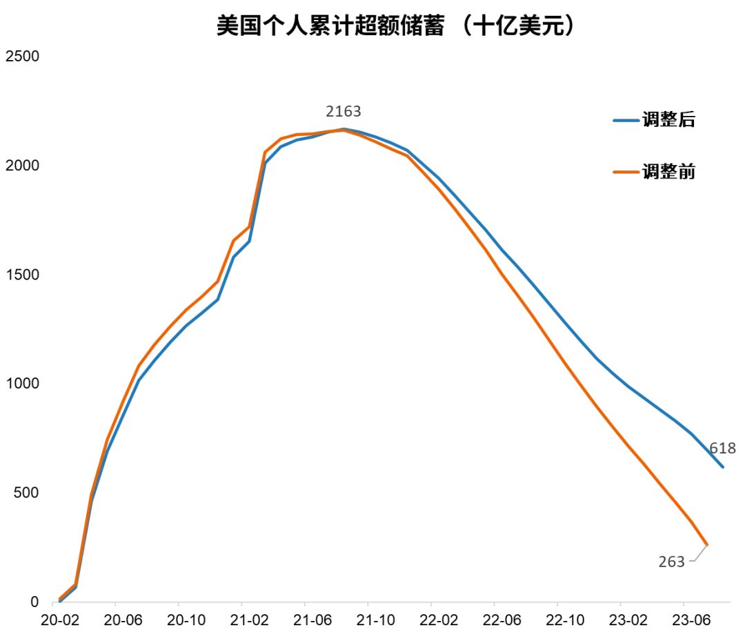 而且今时不同往日,现在全球贸易不景气、中国、日本、欧盟、石油输出国的贸易顺差减少,债主家也没什么余粮了,而且逆全球化和地缘政治矛盾也会降低很多发展中国家购买美债的意愿。美国之外的买家少了,那么美国国内呢?今年美国经济表现强劲,9月公布的就业和零售数据远超预期,三季度实际GDP环比折年率可能高于5%,衰退要延迟到明年才来,甚至很多人认为经济不会衰退,买债的意愿不强。美联储紧缩政策效果不佳,一方面是扩展性的财政政策抵消了紧缩性的货币政策,另一方面是家庭用于消费的“超额储蓄”仍未耗光,甚至高于此前的估值。高利率虽然导致住房市场的需求减少,但由于此前长期锁定的低抵押贷款利率,家庭没有还贷压力,不急于卖掉住房使得供应仍然紧张,房价仍然维持在高位。高利率甚至没有明显压低股市表现,这些都使得家庭财富仍然处在高位。
