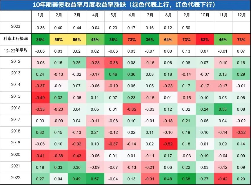 当然,短期内美债仍然有下跌的压力,一方面,四季度美国经济就可能出现“滞胀”,经济增速放慢但通胀下来很慢,美联储再加息1-2次的概率虽然很小,但不能排除;另一方面,美国明年大选,可能继续加大财政支出撑经济,导致债券市场的供需失衡持续。实际上,过去美债收益率在四季度更容易上行。