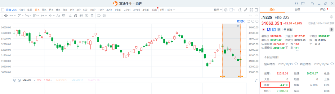 受美债收益率下跌影响,今日A股涨近0.78%,日经225也止住跌势。