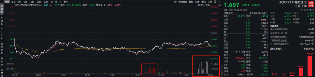 今日,沪深300ETF创有史以来的单日最高成交量。下午,上证指数接近翻绿时,成交量突然放大,出现明显的护盘动作。在尾盘时,成交量再度放大,想必又是汇金出手了,今日护盘时间比昨日还提前了半小时。