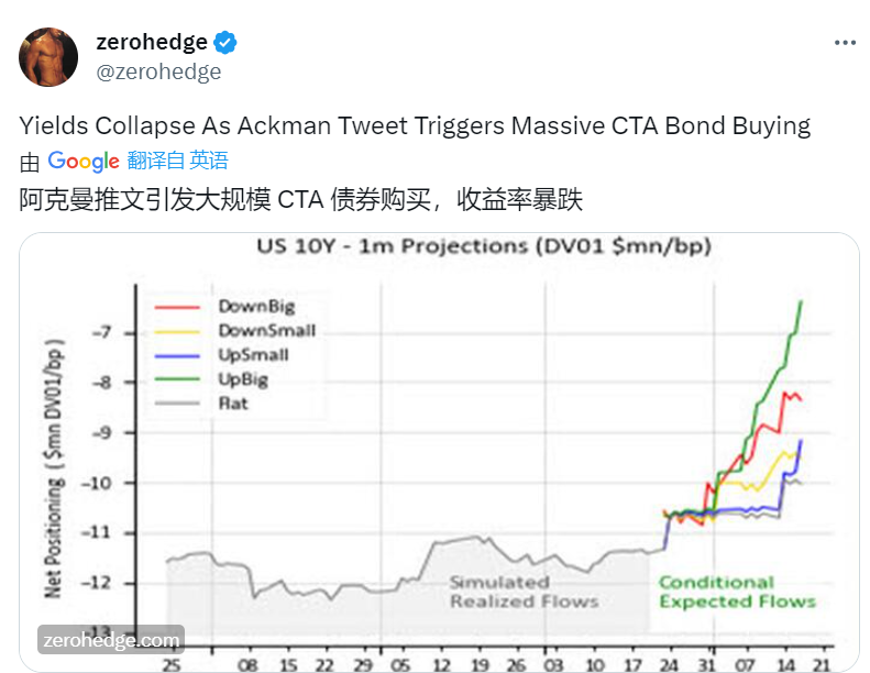 受Ackman和Gross的推文影响,引发了大规模CTA债券购买,美债收益率暴跌。