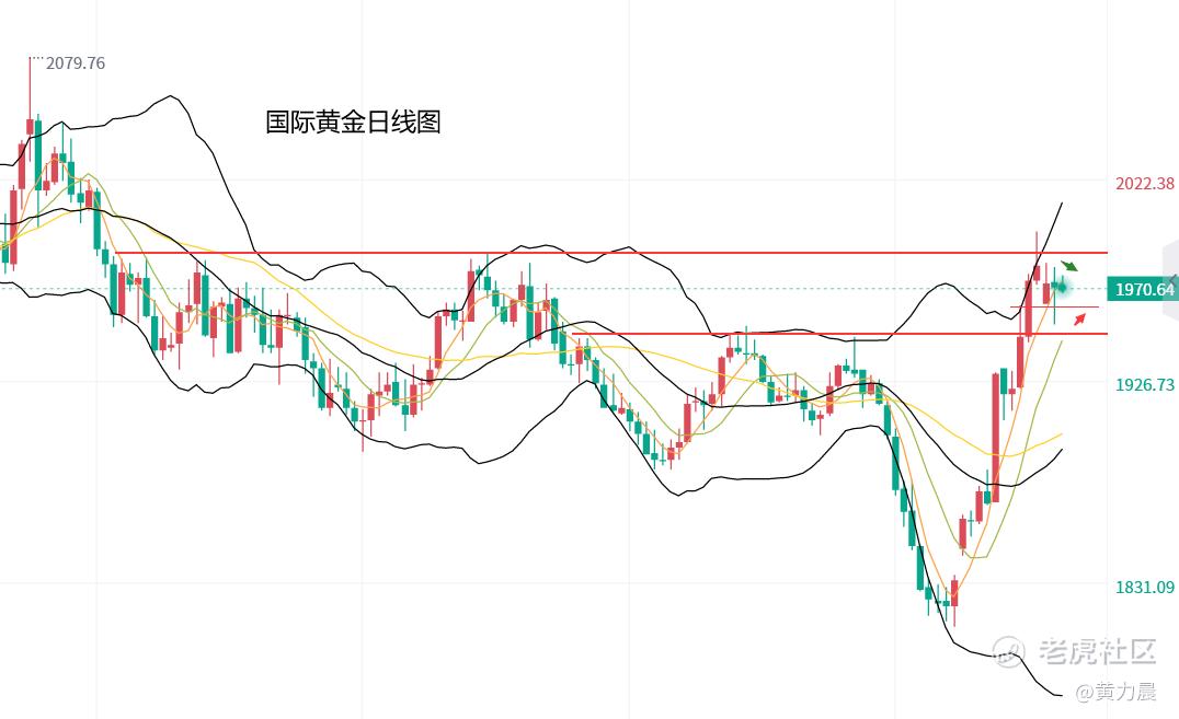 昨日周二我们认为,黄金涨势暂时遇阻,展开高位震荡调整,建议大家上方压力关注1980美元,下方支撑关注1962美元,若继续走弱,可能继续下探1950美元。从之后的走势来看,黄金承压走低,连续失守1968(日线5日均线)和1962美元附近支撑,最低跌至1953美元,随后向上反弹,涨至1977美元遇阻。周三开盘,黄金试探1977美元遇阻,跌至1968美元企稳,目前暂时交投于1971美元附近。黄金高位震荡调整,基本符合预期。