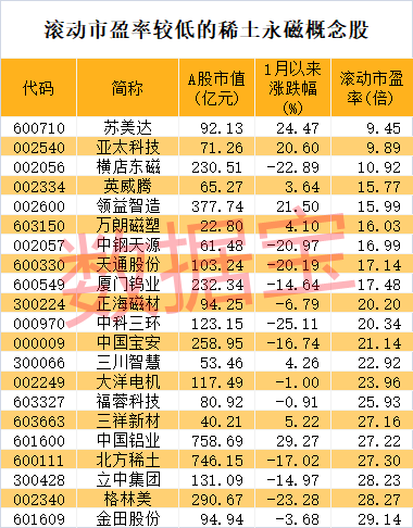 10只稀土永磁概念股具备高增长潜力