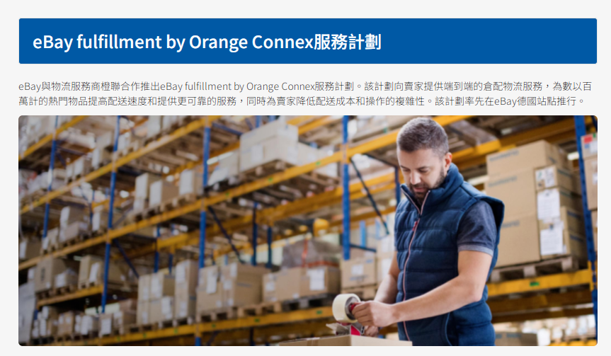 eBay也是如此。通过eBay fulfillment by Orange Connex服务计划,卖家可享受端到端、“一站式”的仓配物流服务,这样不仅有利于卖家降低配送成本,而且还能够为买家提供更好的购物体验,eBay又何乐而不为呢?