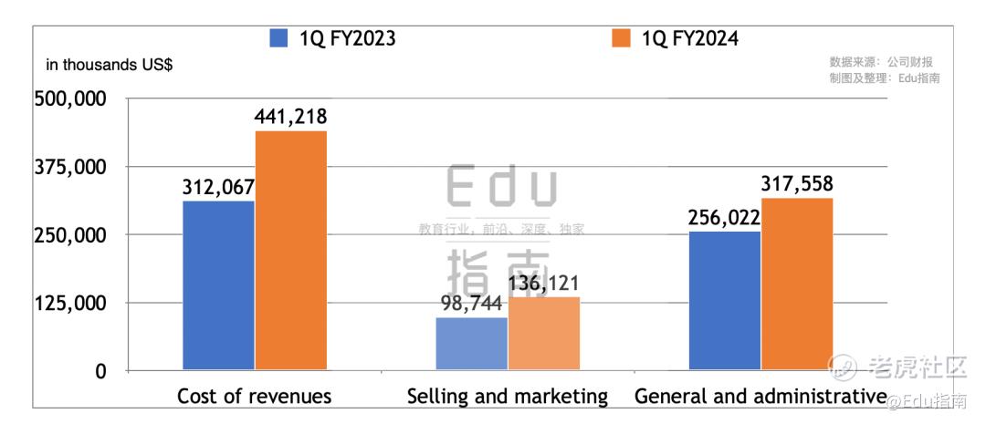 新东方公司2024财年Q1经营成本与费用为8.9亿美元,上一财年Q1为6.7亿美元,本财季该成本费用同比增长34%。本财年Q1该项成本费用低于2022财年Q1同期的12.8亿美元。