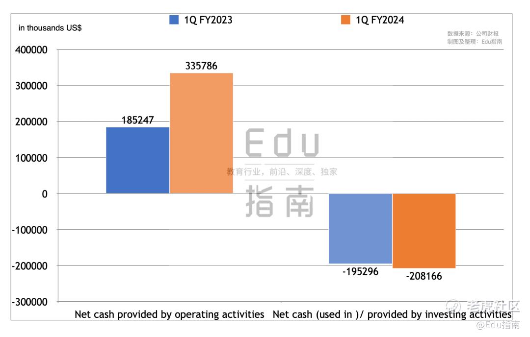 新东方公司本财季经营活动现金净流入额为3.4亿美元,同比上一财年同期的1.9亿美元,本财季该现金净流入增幅显著,达81%。