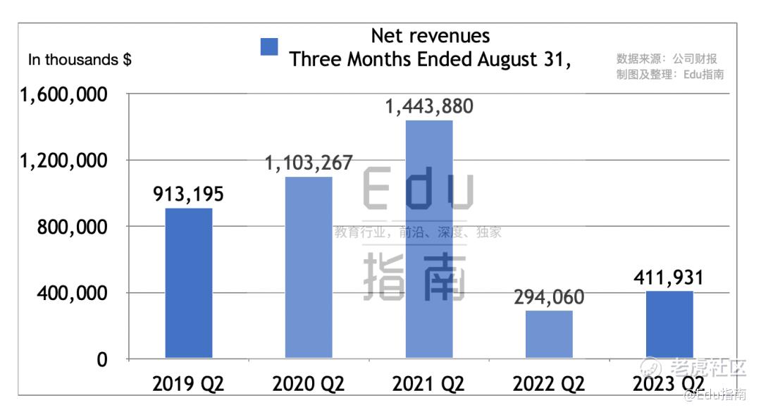 -最新季度营收(4.1亿美元)不及新东方最新财季(11亿美元)一半 -本财季该公司营收由下降转为增长。但相较更早时期2019财年Q2-2021财年Q2数据,本财季营收仍有待进一步提升。