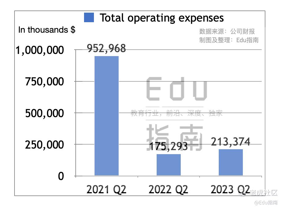 根据季报,好未来公司2024财年二季度总经营费用为2.1亿美元,同比上一财年同期的1.8亿美元,本季度该费用减少22%。近两个财年Q2该经营费用相较2022财年同期的9.5亿美元,分别表现为显著下降。