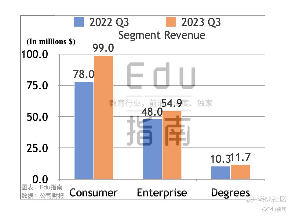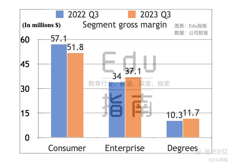学位业务毛利1170万美元,同比上一财年同期的1030万美元,Q3该毛利增幅为14%。