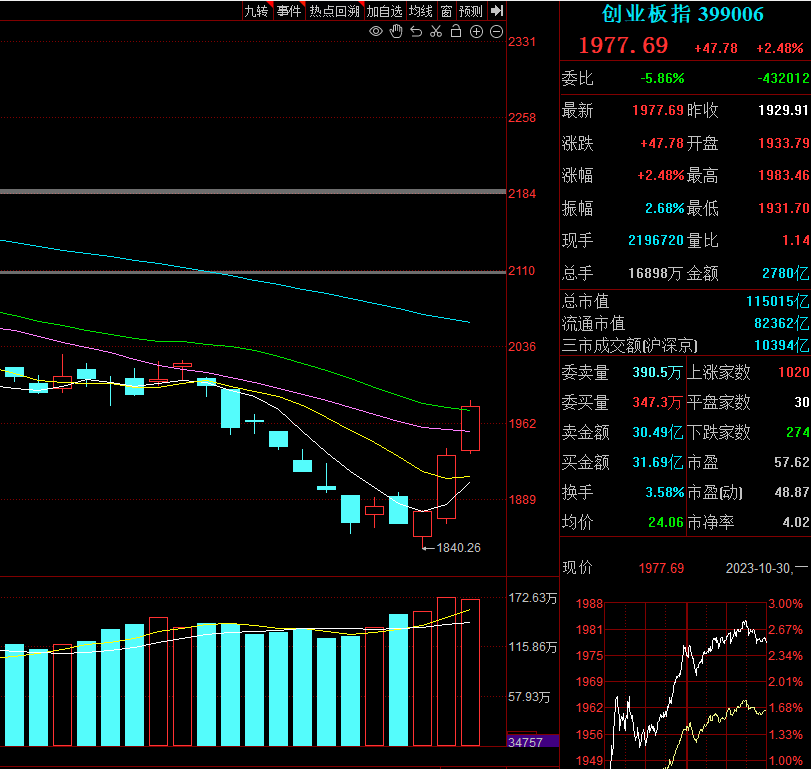 1、A股总算迎来了大家喜闻乐见的反弹行情,并且还是主指与创指联动走强,稳定性肯定会比单腿走路更强劲,反弹趋势也比曦丹想象中更强。同时也代表一个问题,那就是前面估计真是超跌了,砸盘砸的过于情绪化,修复和破坏程度是成正比的。