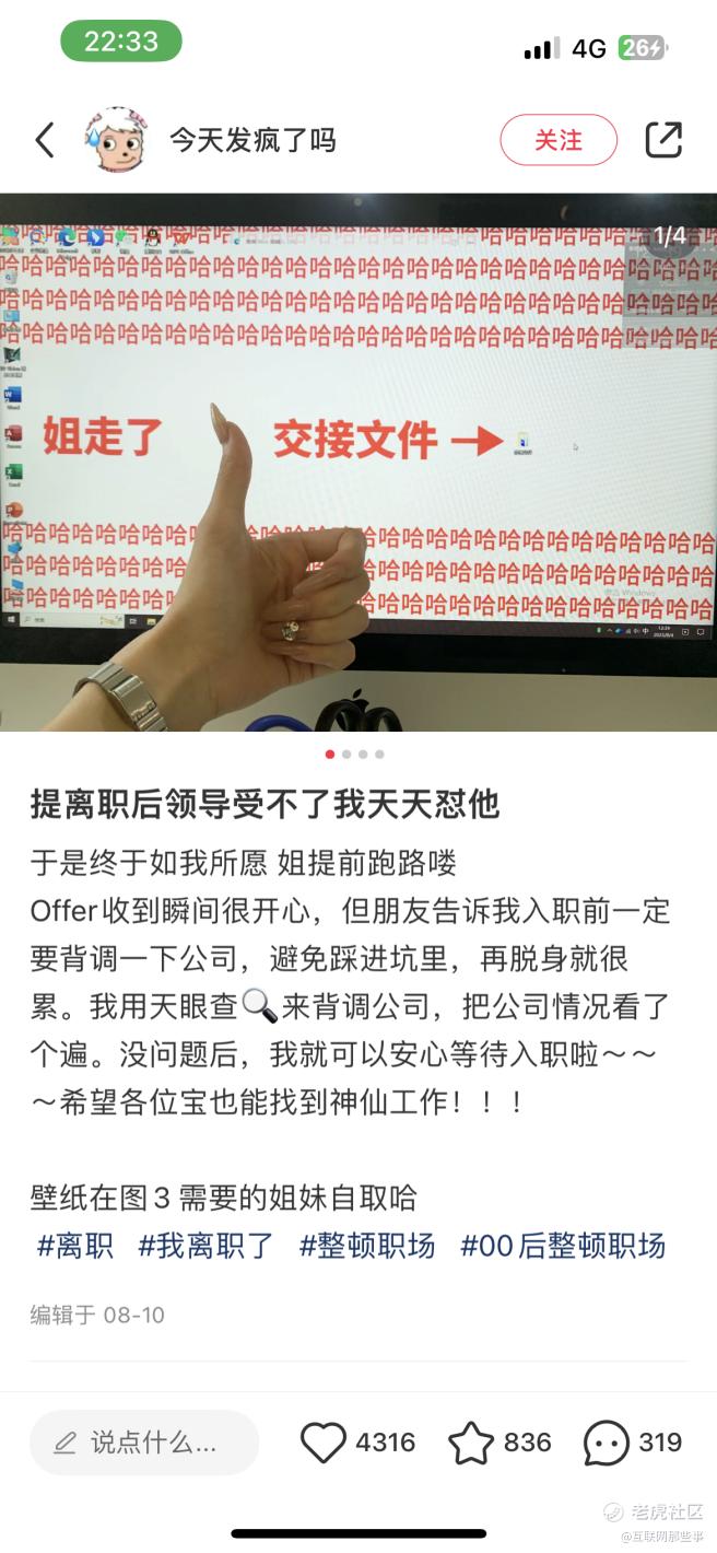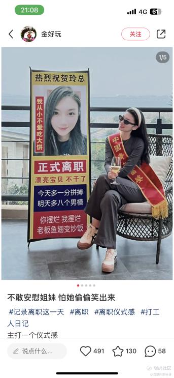 提完离职后,内耗消失了,脸上的笑容是之前从未见过的灿烂,跟领导讲话也不再低声下气和委曲求全,高调离职不仅当事人爽了,更让还在默默忍耐的社畜有一种看爽文的畅快。
