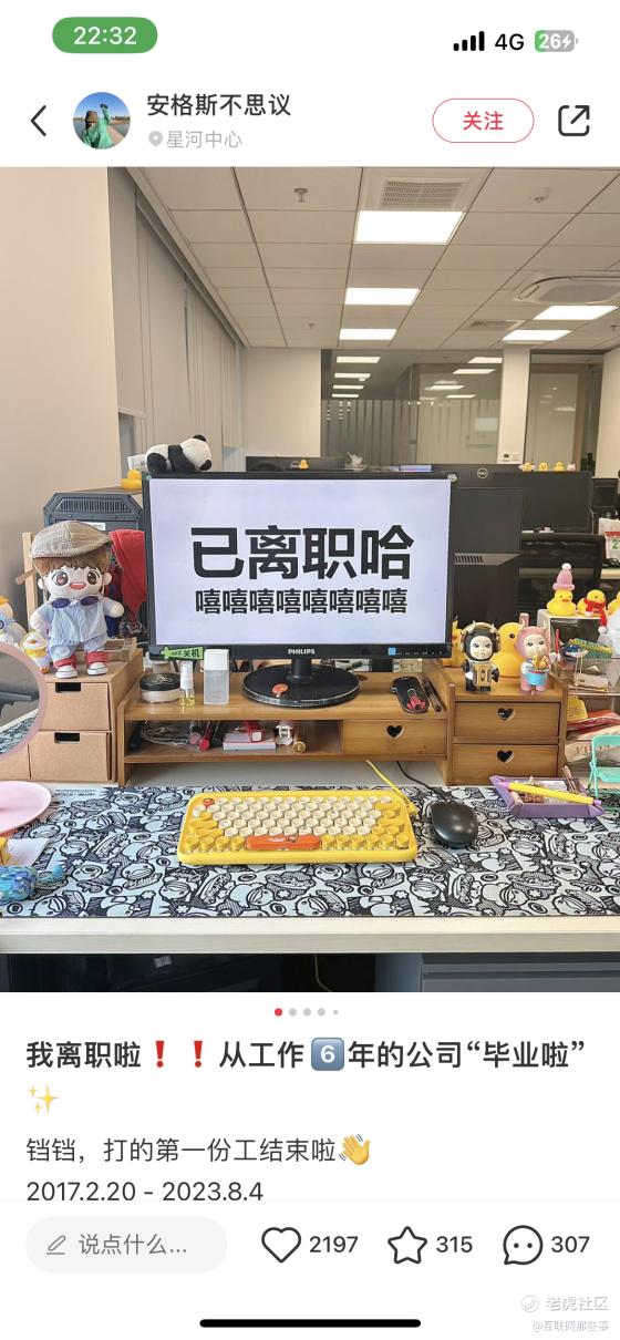 与过往世代不同的是,新世代的青年完全不会有任何离职羞耻,甚至高调离职。不仅在社交媒体高调发布离职动态,在离职前的工作头像和工位也会高调显示离职状态,一整个昭告天下生怕别人不知道。