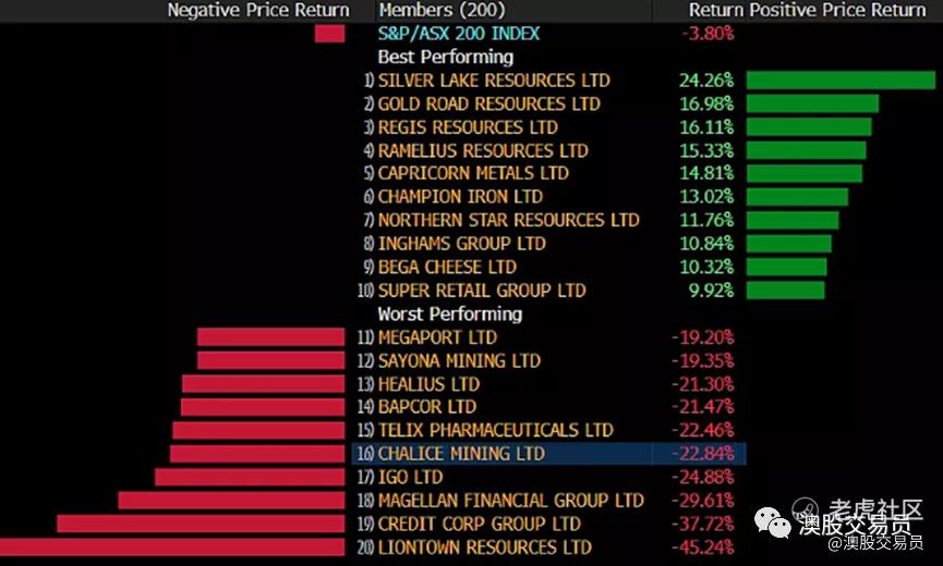 本月板块及ASX200成分股排名: