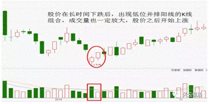 (需说明的是,在股市实战K线图形走势中,标准的低位并排阳线K线组合并不多见。)