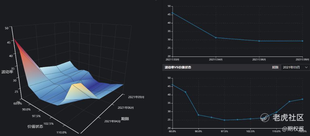 每个期权合约的隐含波动率、价值状态和到期日各不相同。同一标的不同期权合约,以隐含波动率、价值状态和到期日为坐标,构成一个曲面。做多曲面上隐含波动率低估的期权合约、做空隐含波动率高估的合约,赚得是隐含波动率均值回归的收益。
