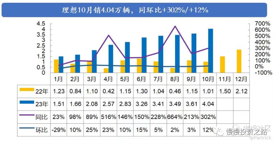 1. $理想汽车(LI)$ :理想汽车10月交付40422 辆,同比增长302%,环比增长12%,连续在刷新自己的交付记录。今年累计交付284647辆,累计同比增长194%,交付量已经是其他几家车企之和了。