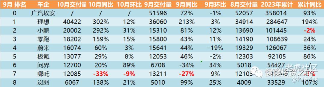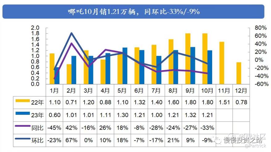 7.哪吒:10月份哪吒汽车全系交付12085台,同比下降33%,环比下降9%,唯一一家同比环比都下滑的车企,没啥可以看的。
