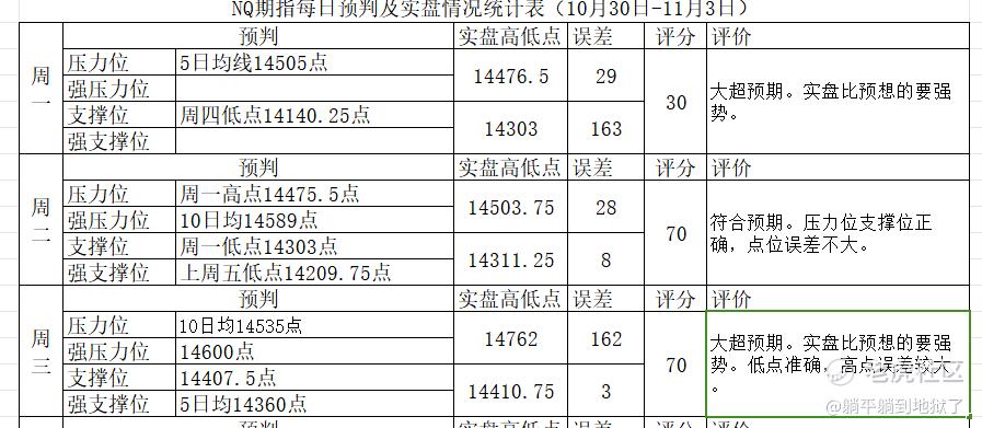 昨日预判及评价(见图表)(发现一个现象:股指上升趋势时,预判准确率高误差小;股指下跌趋势时,预判准确率低误差大。原因:上涨趋势时,市场预期一致情绪稳定,vix低位振荡或阴跌,市场自身主导权强基本按自身规律走:上涨-调整-再上涨-周而复始。下跌趋势时:市场预期分歧情绪剧烈波动,vix剧烈波动或大幅上涨,市场自身主导权弱基本按规规律框架走,波动较大。此现象命名为躺氏指标,指导我的预判和操作。)