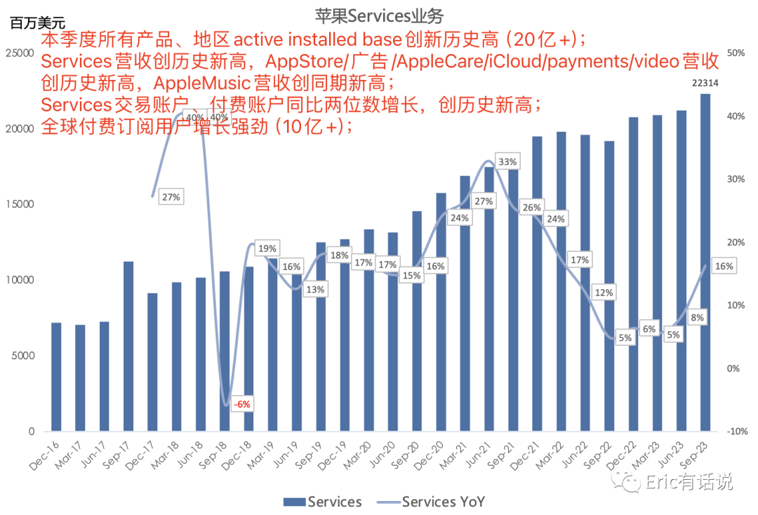苹果核心增长公式:AAPL=active installed base * customer engagement (active installed base#新高*付费订阅用户#新高)。
