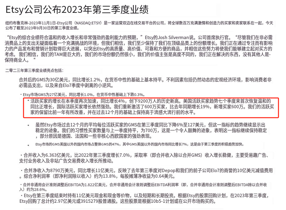 显然,身处略显疲态的全球经济环境之中,Etsy还是难逃冲击,受到了一定的影响,正如其首席执行官Josh Silverman表示的那样:“毫无疑问,当前的宏观经济环境对于非必需消费品的支出构成了极大挑战,这将继续使我们在第四季度的营收增长中面临挑战。”