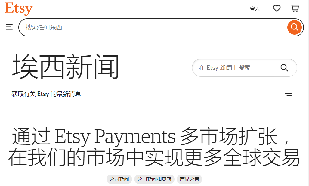 就在前不久,Etsy发布公告称,其即将在包括乌克兰、印度、泰国、阿根廷、智利、秘鲁在内的这七大新市场推出它自己的支付平台“Etsy Payments”,这意味着Etsy要加码押注在线支付领域。根据Etsy的消息,截至目前它已经向40多个市场的卖家推出了Etsy Payments,这对卖家来说也是一个好消息,能够借此机会提高消费者在支付时的丝滑程度,从而提高转化率。