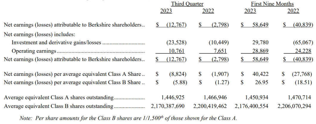 像往常一样,伯克希尔希望投资者无需过度关注伯克希尔股票投资组合的季度波动。该公司在一份声明中表示:“任何特定季度的投资损益金额通常毫无意义,由此得出的每股净利润数据可能会让对会计规则知之甚少或一无所知的投资者产生极大误导。”