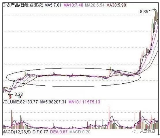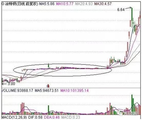 1、长期的怪异技术横盘,倒像老庄股的技术横盘,因为这样的横盘,每天的波动幅度真的是太小了,很像老庄股!像这样的横盘股,一旦爆发起来,可是惊人的。如下图: