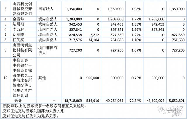 再来看看机构股东,晋融社发现,与上市之初相比,机构股东有“一进一出”,新增“锦波生物员工参与北交所战略配售1号集合资产管理计划”为第十大股东,而在上市之初位列第三大股东的山西转型综改区合成生物产业投资开发有限公司(以下简称“综改区产投”)已经悄然退出前十大股东行列。