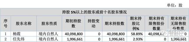 杨霞丈夫任先炜持有199.67万股,对应市值为5.5亿元;